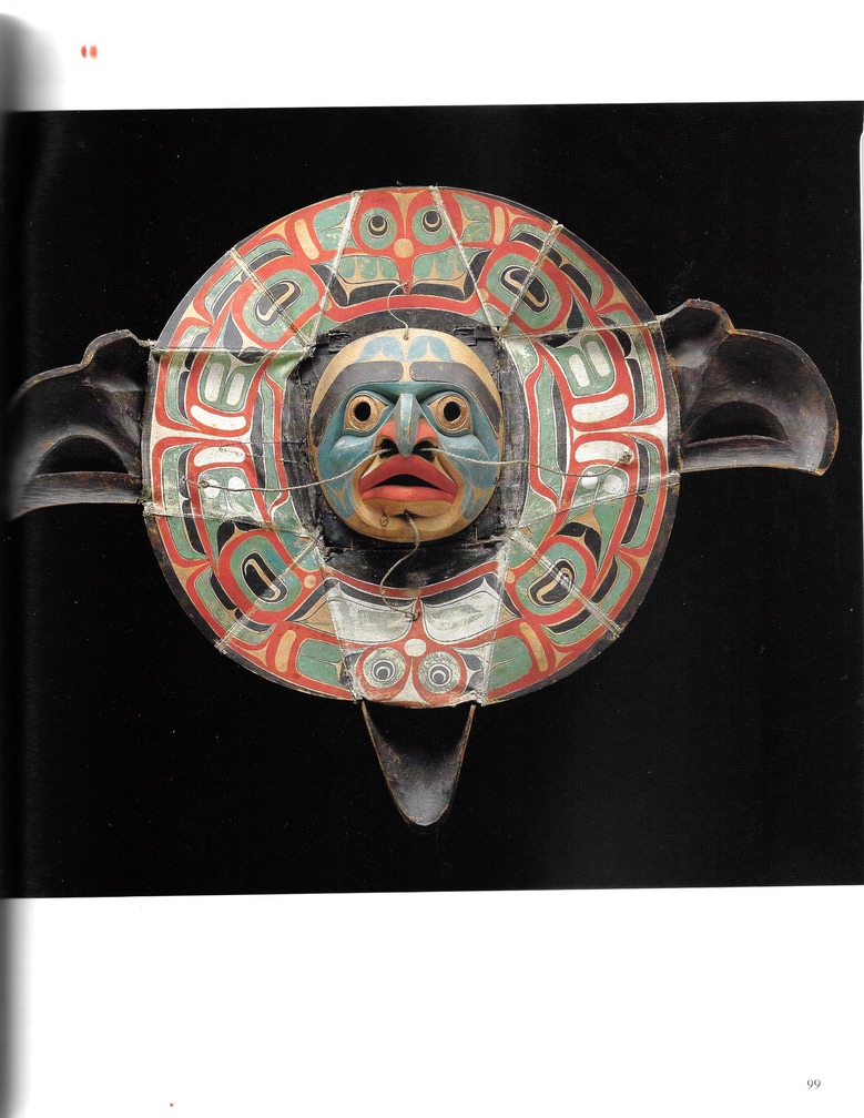 This week I want to share the images of a Sun Transformation Mask from the Nuxalk people. This magnificent creation was “collected” ca. 1865 and now languishes — undanced — in a European museum. Still, it is filled with a power that I can feel, even if only through its image on a page.