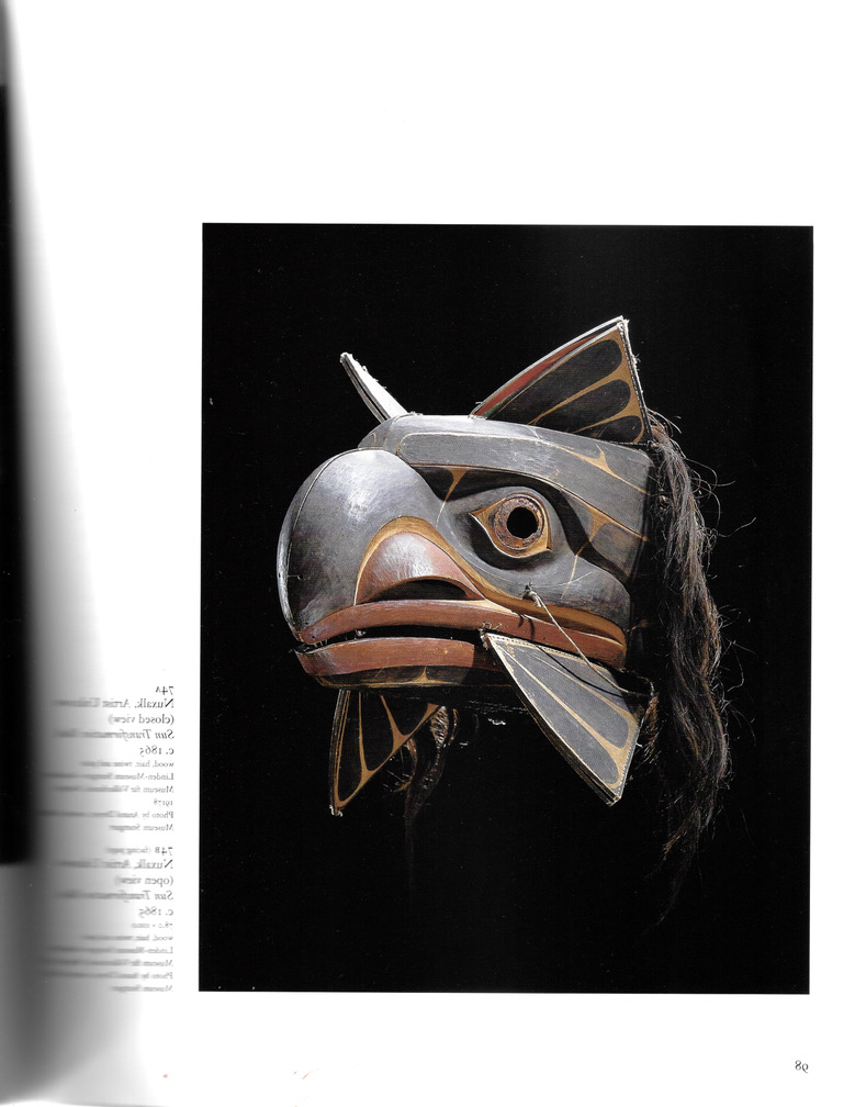 I do not know how the Nuxalk people read this image. The closed mask makes me think of Raven with his prominent curved beak. The open mask is typical of Sun images throughout the northern Pacific coast of North America. And at least this speculation fits with one of the Nuxalk creation stories.