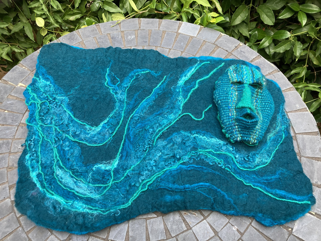 This still doesn’t feel finished, so I haven’t sewn on the mask yet. There may — or may not — still be some flowing and changing needed. I’ll pause and listen to the rivers’ songs.